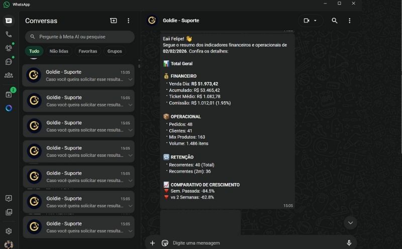 Equipe altamente qualificada e comprometida, entregando o serviço que promete. Super recomendo. Muito obrigado Goldie 💪